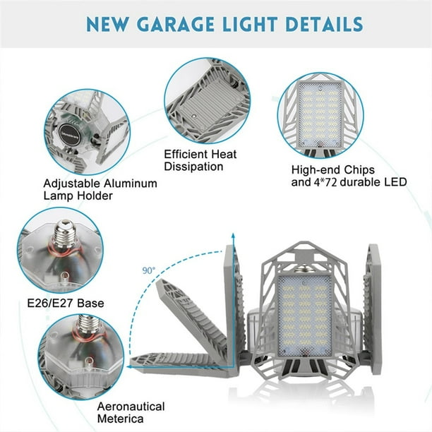 60w Led Garage Lights Foldable Bulb 4 Adjustable Fan Blades Deformable Garage Ceiling Lights Panels Shop Lights Led Light Bulb For Garage Basement Workshop Walmart Ca